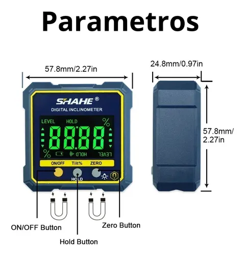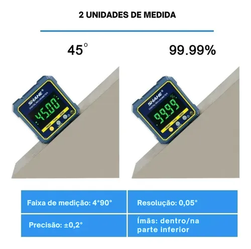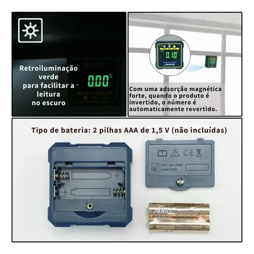 Com uma grande tela LCD p/melhor visibilidade. Com ímãs embutidos traz grande conveniência para você, permitindo que você anexe o cubo a qualquer objeto de aço. É ótimo para medições de ângulo de precisão.